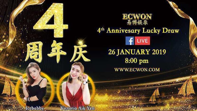 ECWON生日快乐!!庆祝ECWON成立4周年!!ECWON于2019年1月26日举办了FB直播幸运抽奖活动!奖品总价值RM 50,000.00。
