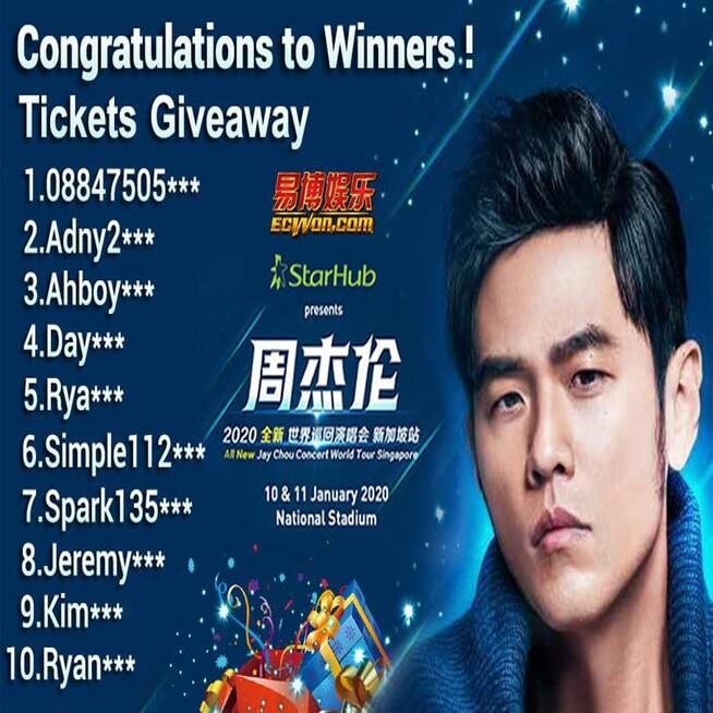 ECWON送出周杰伦世界巡回演唱会新加坡站门票!